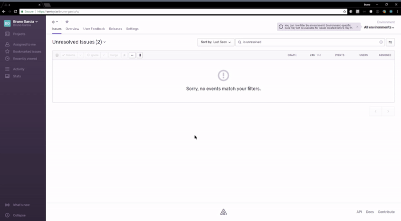 Sample event in Sentry