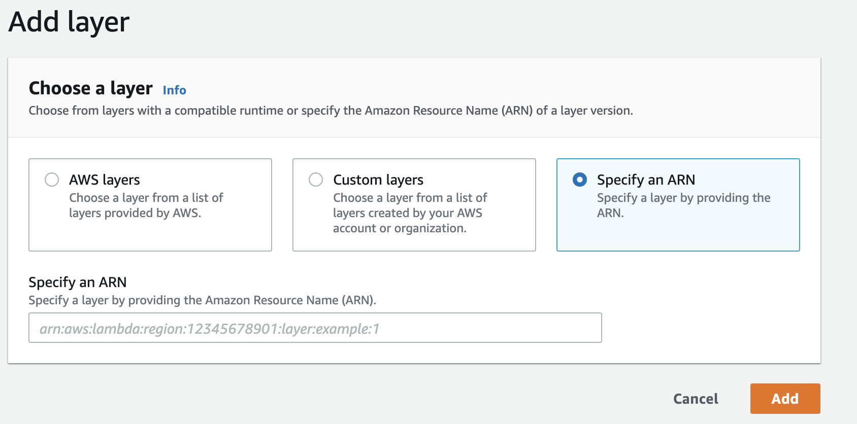 Add the Sentry Layer by navigating to your Lambda function. Select Layers, then Add a Layer.