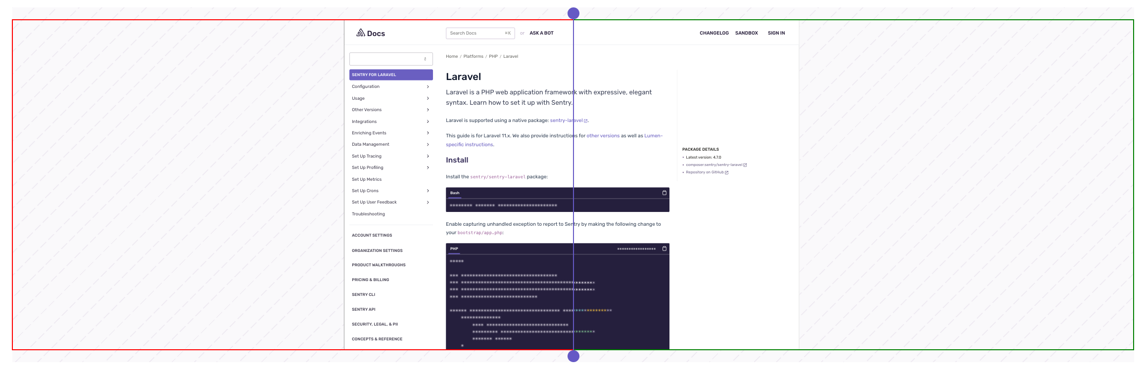 The image slider tool allows for comparing the two page states by overlaying the images on top of each other. Click and drag the purple line to reveal one image or the other.
